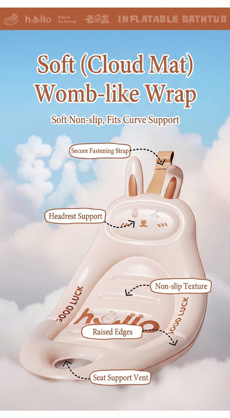 CloudBath™ Baby Inflatable Bathtub – Soft Support Bath Nest with Cushion & Drain Plug