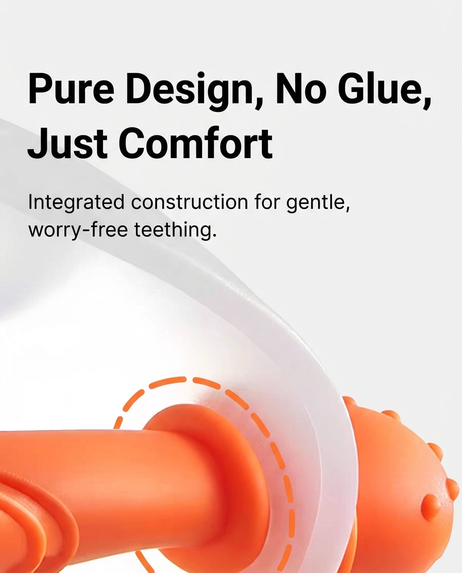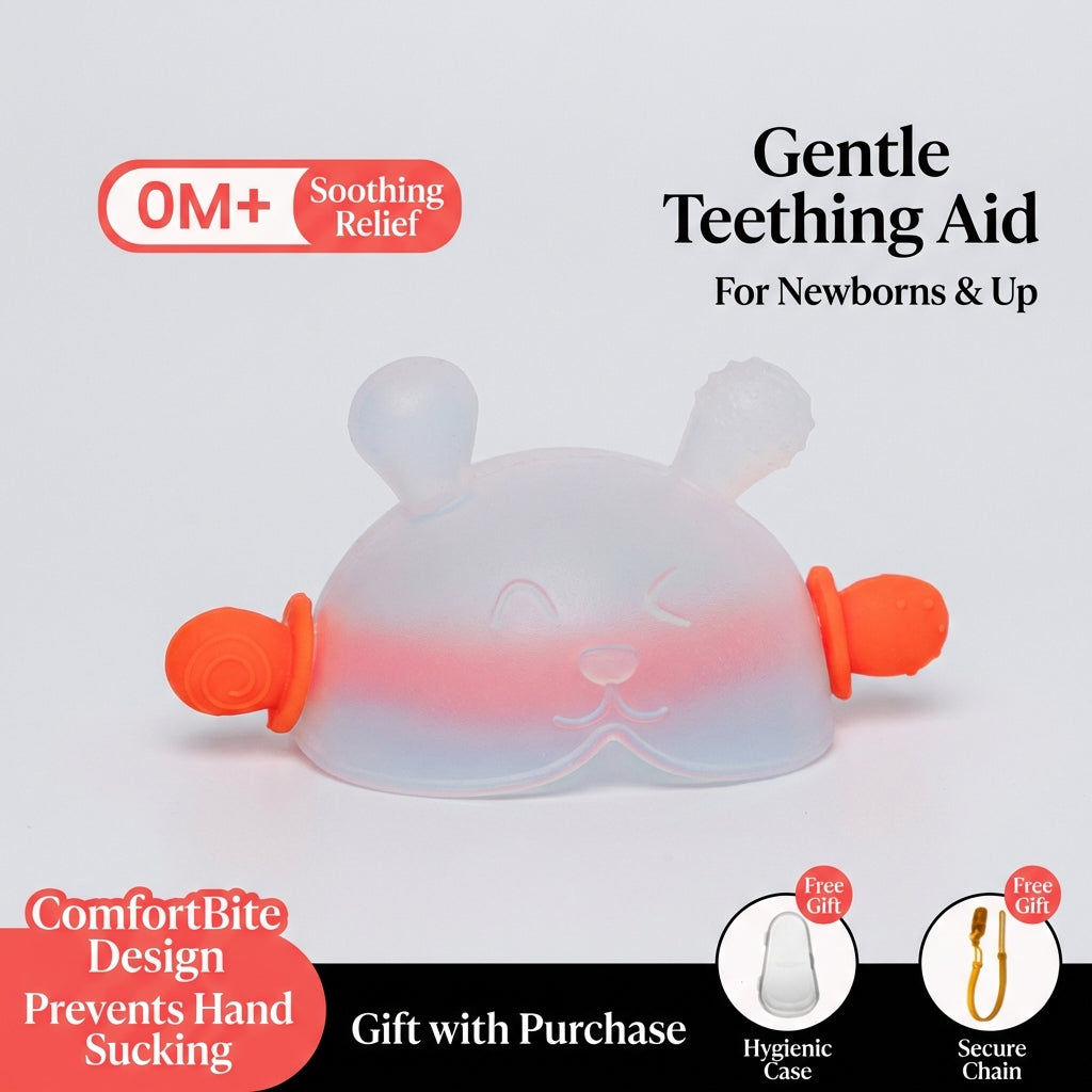 The ComfortBite™ Mushroom Teether is specially designed for newborns and early teething babies. Its 360° wrap-around structure allows babies to chew safely from any angle while preventing hand sucking.