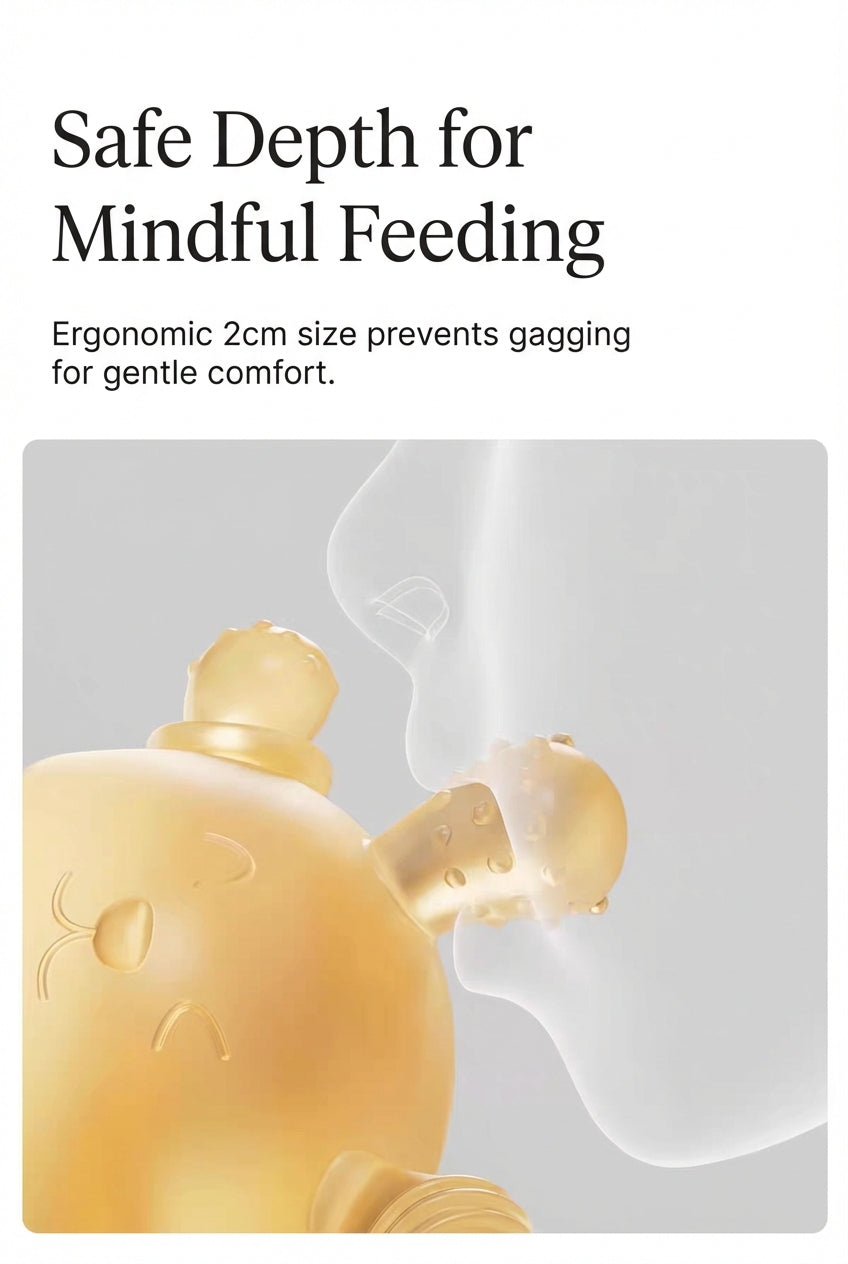 Smooth pacifier-style tip for sucking comfort.